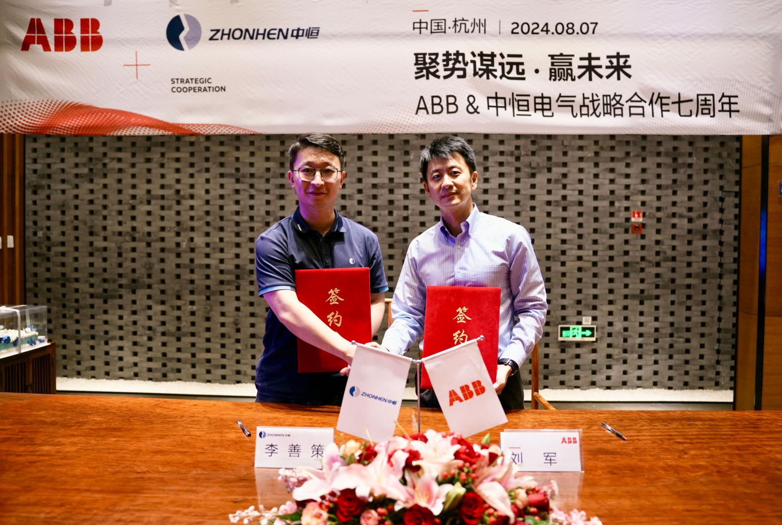 2024年8月7日下午,杭州中恒電氣股份有限公司(以下簡(jiǎn)稱:中恒電氣)與ABB(中國(guó))有限公司電氣事業(yè)部(以下簡(jiǎn)稱:ABB)在杭州中恒電氣總部舉辦了主題為“聚勢(shì)謀遠(yuǎn)·贏未來(lái)”戰(zhàn)略合作七周年簽約儀式。