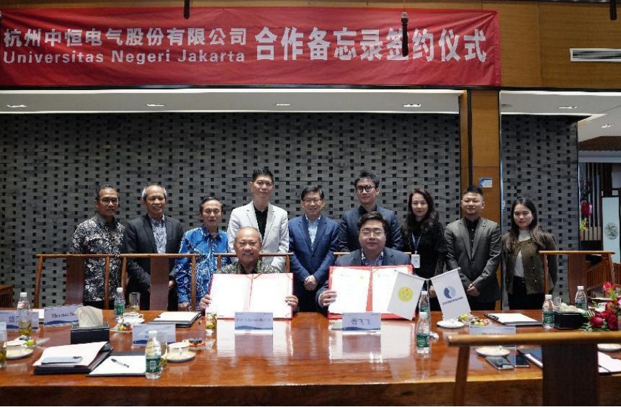 10月25日下午,印度尼西亞雅加達國立大學科馬魯丁校長一行到訪了杭州中恒電氣股份有限公司(以下簡稱“中恒電氣”),公司創始人朱國錠、總裁胥飛飛等領導熱情接待,雙方就資源共享、優勢互補,共同探索數字能源領域教育、科研、產業的深度融合與共同發展簽署了戰略合作備忘錄。