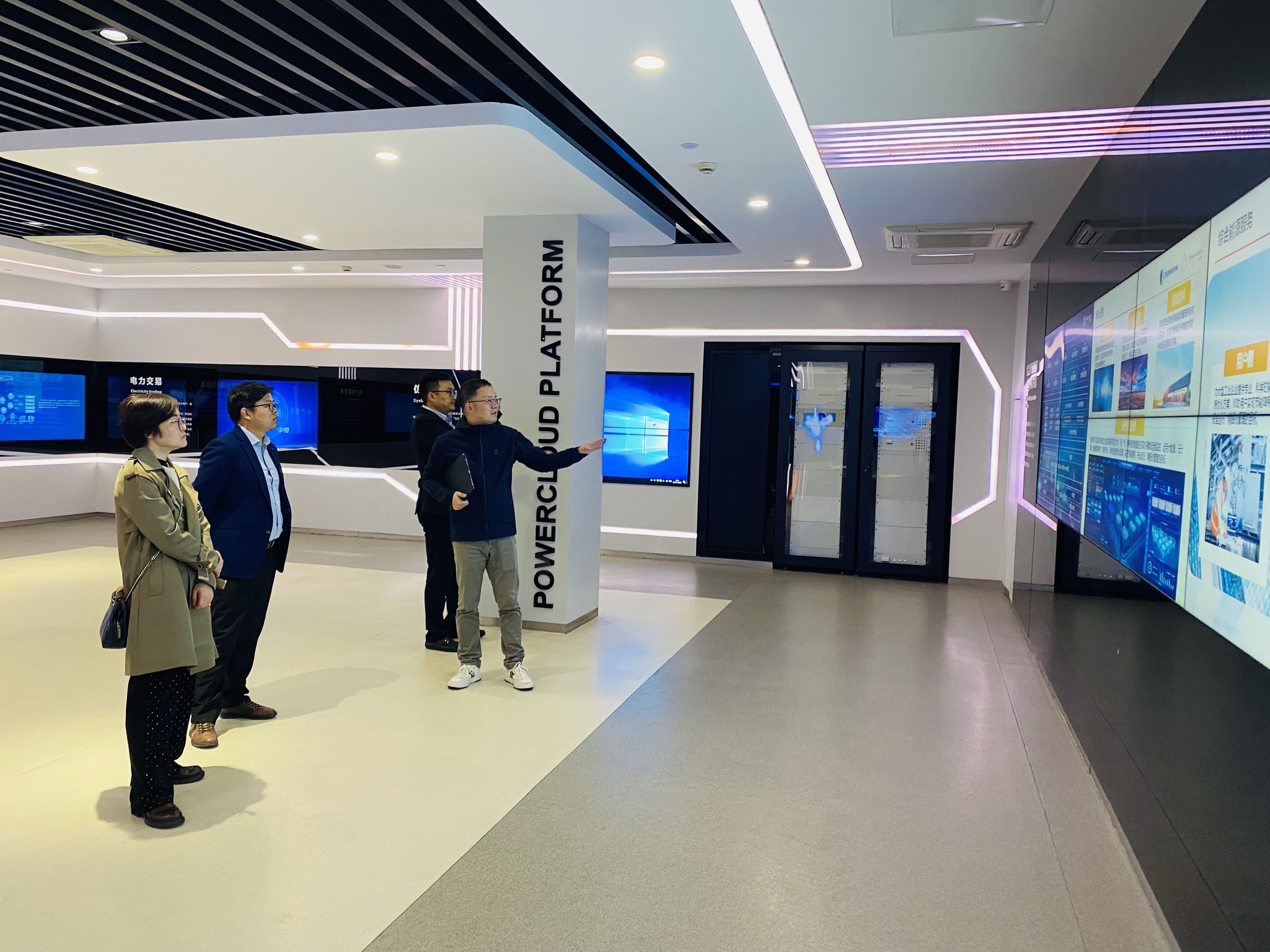 中恒云啟副總章曉鳴先生帶維斯頓代表團參觀了富陽工廠和濱江總部數字能源展廳,并介紹公司發展歷程、核心技術、市場布局以及未來規劃。